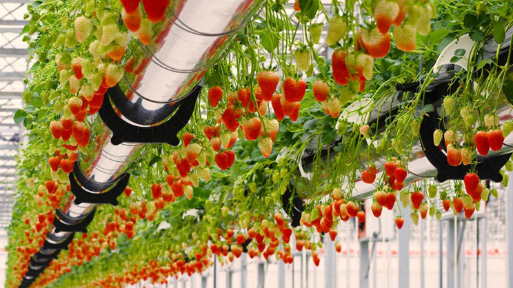 空中草莓园使用数控化的可升降栽培床、营养液循环系统、精准施肥系统等。可升降栽培床根据需要高度可数控自动升降,提升植株光合作用率,栽培床密度较小,土地利用率提高约40%,无地面灰尘泥土和蛇虫鼠蚁污染草莓。施肥系统根据水肥监测传感器数据为草莓分析调配好生长阶段所需的不同营养元素,自动定点定量添加水和营养液。通过栽培床中的管道精准滴灌到草莓根系内,草莓营养均衡全面,无需激素。多余的水分和营养液经过营养液循环系统过滤杀菌处理后循环使用,减少水与营养液的浪费,几乎0排放。年亩产可达5-8吨。高温消毒椰糠基质无重金属污染,规避了大量病虫害;辅以物理+生物(捕食螨)防治病虫害技术保驾护航。果熟时,摘下免洗可食!